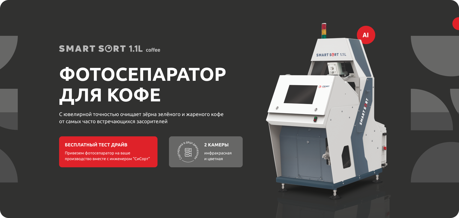 Фотосепаратор «Смартсорт», установленный в «Знак Кофе», снизил потери сырья на 5%, вдвое уменьшил затраты на переработку и ускорил выполнение заказов.