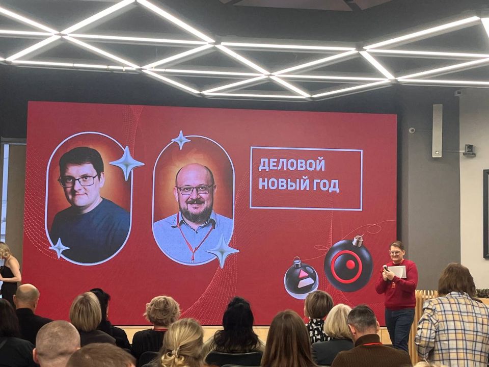 Мероприятие собрало в центре «Мой бизнес» порядка 130 бизнесменов и управленцев очно, также желающие со всей страны смотрели онлайн-трансляцию. Основная тема встречи - изменение мышления в эпоху искусственного интеллекта. По традиции, в первом блоке «Делового Нового года»