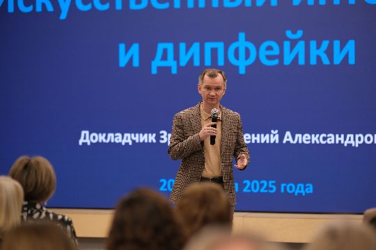 Содержательный разговор об искусственном интеллекте начался с выступления министра цифрового развития и связи Алтайского края Евгения Зрюмова, который в свой день рождения представил доклад о дипфейках.