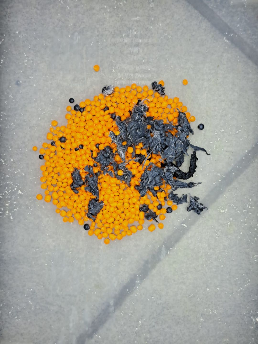 Компания-покупатель занимается переработкой пластика. Фотосепаратор им требуется для сортировки чёрной ПЭТ-гранулы, которую нужно очистить от элементов с оранжевыми вкраплениями и слипшихся частичек.