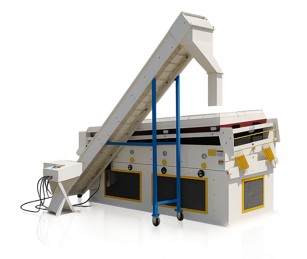Благодаря продуманной конструкции и точной калибровке, машина обеспечивает чистейший итоговый продукт,эффективно удаляя сорные и поврежденные примеси.